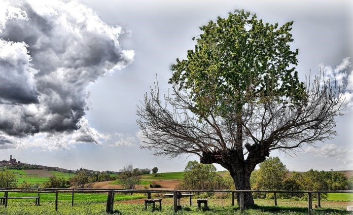 В Италии есть уникальное двойное дерево. Местные жители говорят, что птица уронила зернышко вишни на шелковицу (тутовое дерево), и оно пустило корни через полый ствол.